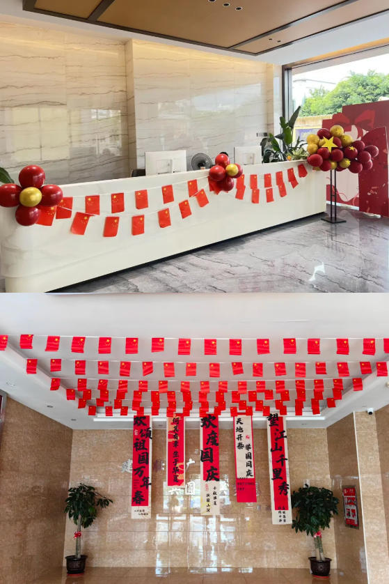 辦公區(qū)大堂里,一面面國(guó)旗迎風(fēng)展,一抹抹中國(guó)紅映初心。這個(gè)國(guó)慶,榮港城用細(xì)節(jié)與心意,為每一位家人打造專屬的節(jié)日記憶,讓您一踏入園區(qū),便能被濃郁的節(jié)日氣息包裹,開啟愉悅的辦公之旅。